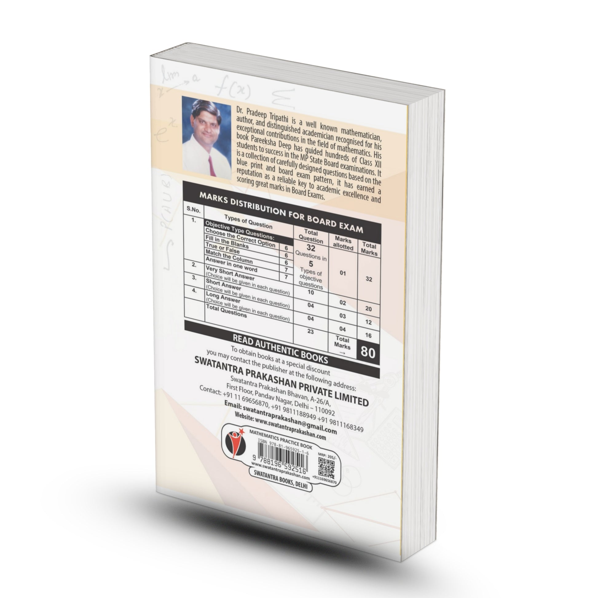 Dr. Tripathi’s expertise and systematic approach make this book a trusted resource for achieving academic excellence. With its blend of conceptual questions, practice exercises, and precise board-based preparation, Pareeksha Deep is an essential companion for every MP Board Class XII Mathematics student aspiring to score high marks. Dr. Tripathi is a well-known mathematician, author, and distinguished academician recognized for his exceptional contributions in the field of mathematics. His book Pareeksha Deep has guided hundreds of Class XII students to success in the MP State Board examinations. It is a collection of carefully designed questions based on the blue print and board exam pattern, it has earned a reputation as a reliable key to academic excellence and scoring great marks in Board Exams.